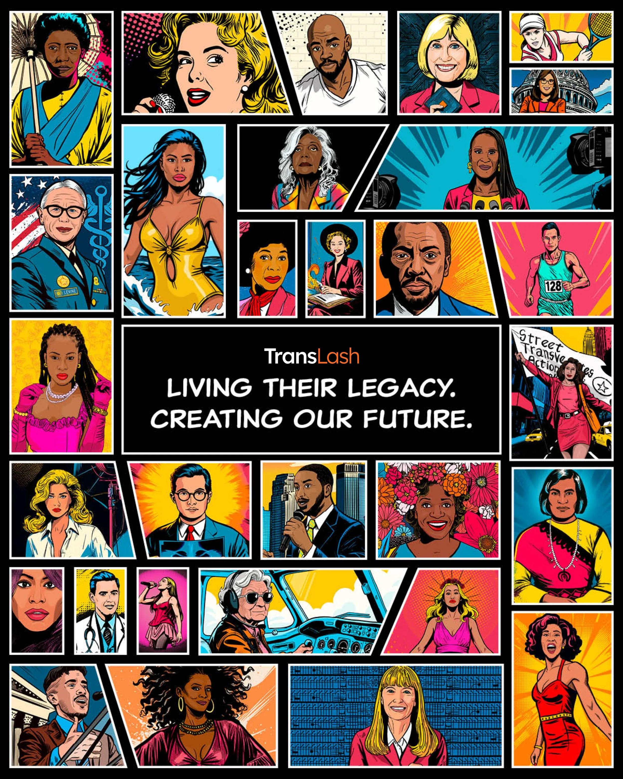 TransLash’s Transcestors & Trailblazers Graphic Zine is a bold, comic-inspired living archive—drawn from resistance, inked in resilience, and created to honor the trans histories too often erased or overlooked. Across its vivid pages, generations of trans elders, artists, advocates, and visionaries come alive through storytelling that refuses to be quiet. I had the joy and responsibility of illustrating and designing the full publication—bringing each portrait, page, and timeline to life with intention, reverence, and love.